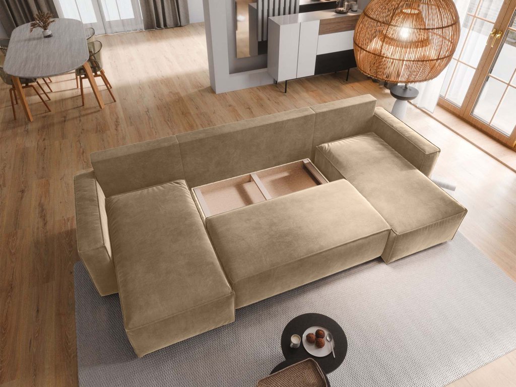 Elegantná rohová pohovka Denim v tvare U je stelesnením moderného komfortu a štýlu. V krémovej farbe pôsobí jemne, vzdušne a dokonale rozjasní každý interiér. Je čalúnená zamatovou látkou Monolith, ktorá vyniká svojou hebkosťou, decentným leskom a vysokou odolnosťou. Vďaka hydrofóbnej vrstve odpudzuje tekutiny, takže aj malé nehody sa dajú rýchlo vyriešiť. Látka je navyše mimoriadne pevná, takže je vhodná aj pre domácnosti so zvieratkami.