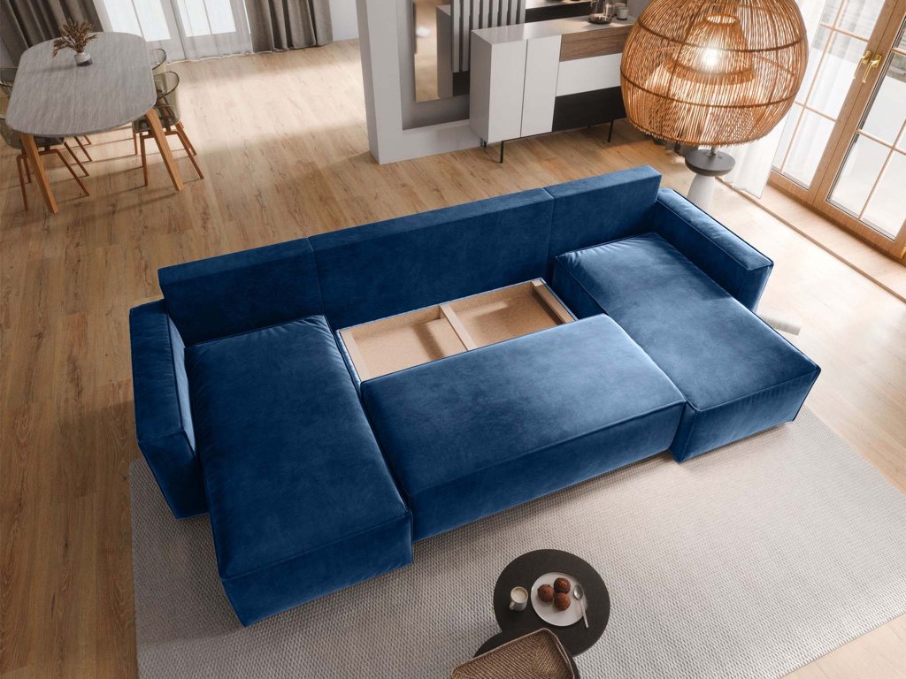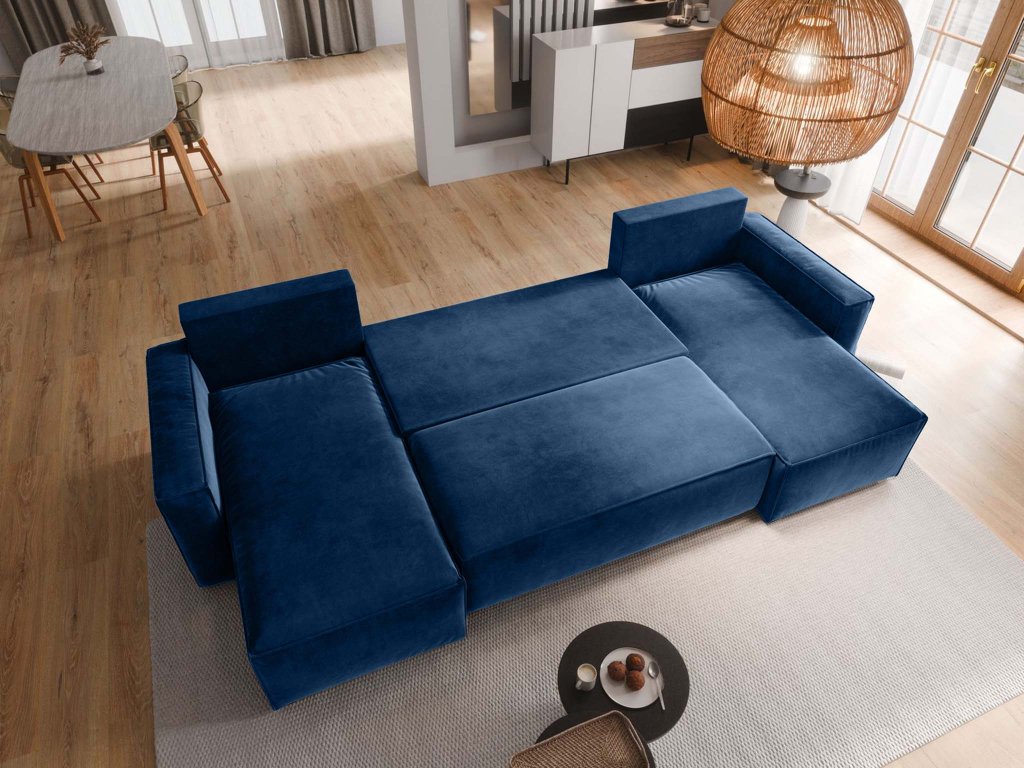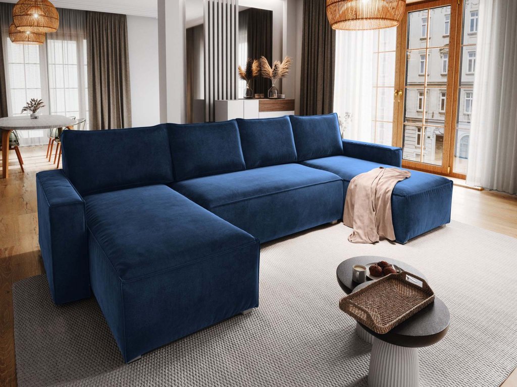 Objavte sedenie, ktoré premení vašu obývačku na oázu štýlu a relaxu. Účková pohovka Denim v tvare U nie je len obyčajný kus nábytku, ale prísľub bezkonkurenčného pohodlia. Jej čalúnenie tvorí elegantná modrá zamatová látka Monolith, ktorá sa vyznačuje nielen luxusným velúrovým leskom a mimoriadnou jemnosťou na dotyk, ale aj vysokou odolnosťou proti opotrebovaniu a ťahaniu. Vďaka tejto kvalite a zároveň príjemnému pocitu je skvelou voľbou aj do domácností s deťmi alebo zvieratami. Hydrofóbna technológia zaistí, že rozliate tekutiny zostanú na povrchu, čím je údržba neobyčajne jednoduchá. Konštrukcia je postavená na pevnom základe z kvalitných nábytkových dosiek a dreva. Pevnú oporu pri sedení poskytuje výplň z vysoko elastickej polyuretánovej peny T30. S celkovou šírkou 295 cm ponúka dostatok miesta pre celú rodinu.