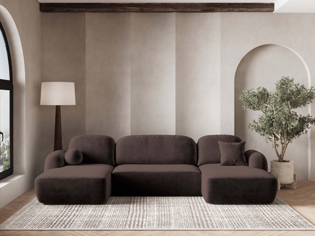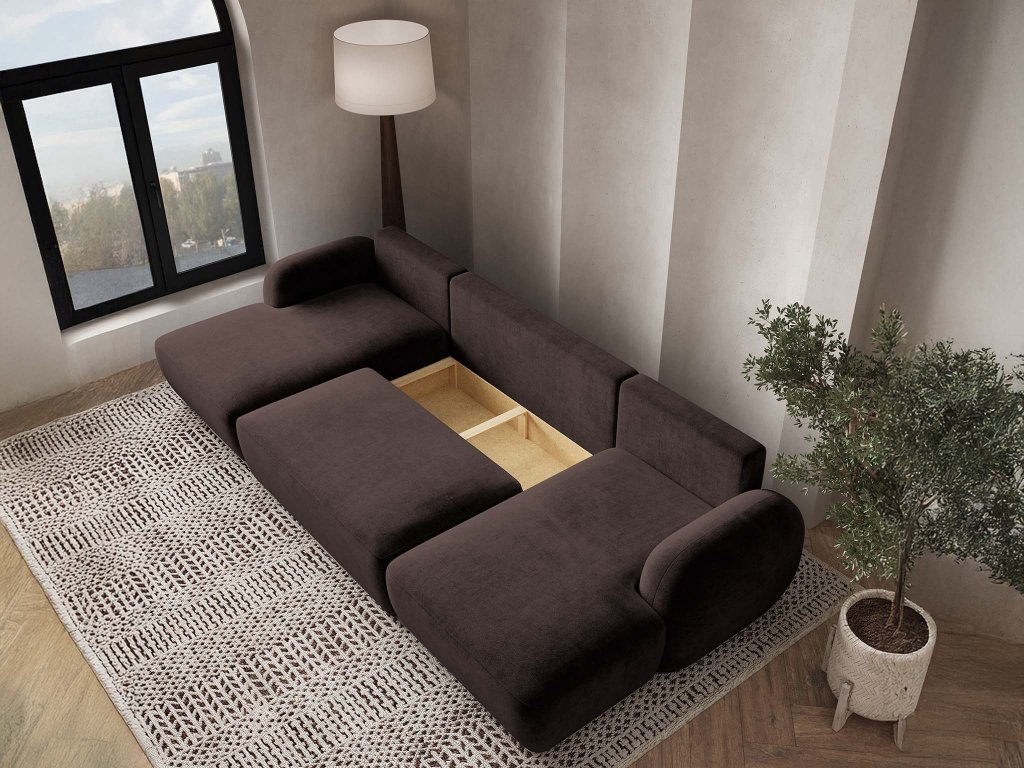 Hnedá rozkladacia sedačka Savona K v tvare U prinesie do vašej obývačky nádych moderného štýlu spojený s maximálnym pohodlím. Ak túžite po priestrannom mieste na oddych aj spoločné chvíle s rodinou, táto sedačka je ideálnou voľbou. Látka Kronos z jemného velúru dodáva sedačke elegantný vzhľad a jej zamatový povrch pôsobí mimoriadne príjemne na dotyk. Stabilná konštrukcia z drevotriesky a preglejky v kombinácii s penovou výplňou a vlnovými pružinami zabezpečuje dlhodobý komfort a odolnosť.