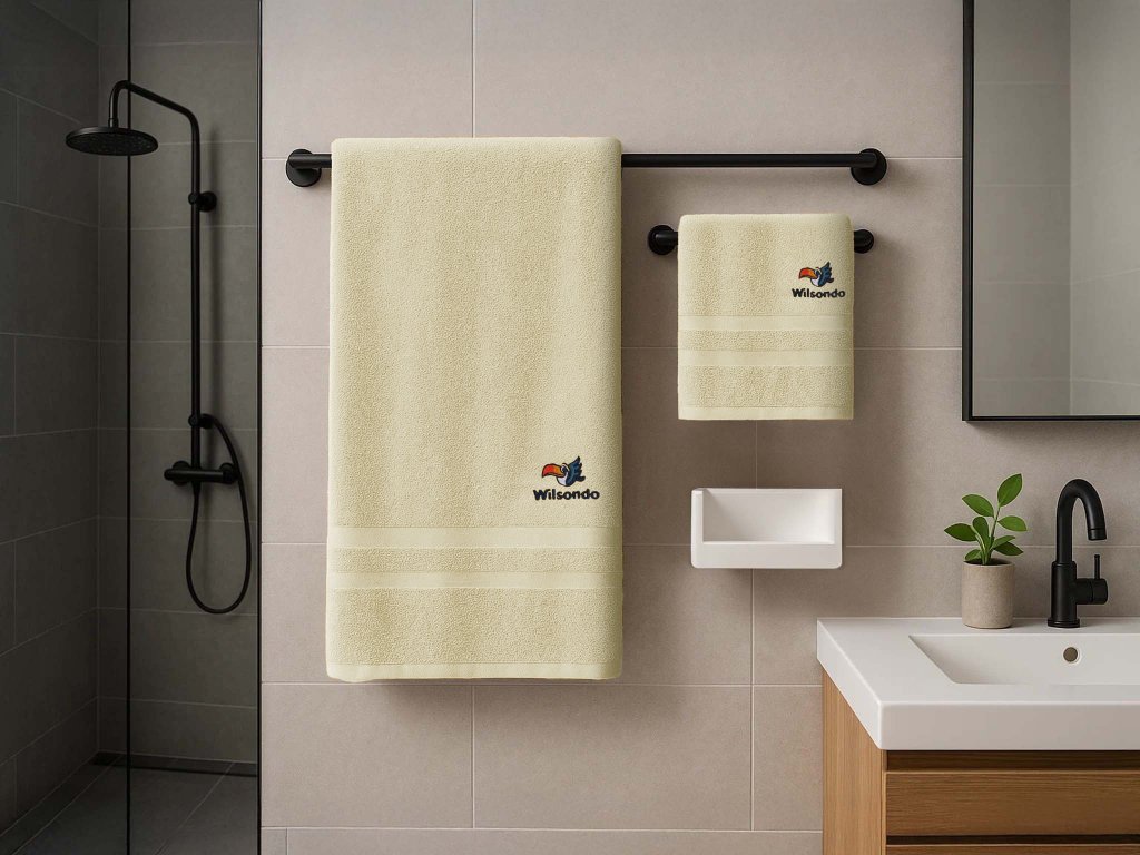 Krémový uterák Velia s rozmerom 50×30 cm je skvelou voľbou na ruky, tvár či do cestovnej tašky. Vyrobený zo 100 % froté bavlny s gramážou 400 g/m² ponúka výbornú savosť a jemnosť, ktorú oceníte pri každom použití. Pevne prešitý lem a zosilnená dvojitá slučka predlžujú jeho životnosť aj pri častom praní. Elegantné logo dodáva uteráku čistý vzhľad, vďaka ktorému zapadne do každej kúpeľne či kufra.