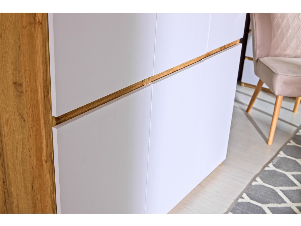Nábytok z kolekcie Arca je dostupný v dvoch farebných prevedeniach, a to v kombinácii dub wotan a bielej farby alebo čisto v neutrálnej bielej farbe. Nábytok je vyrobený z vysoko kvalitnej laminovanej dosky (DTD) o hrúbke 16 mm s hranami zabezpečenými PVC dýhou. Použitý materiál je odolný voči poškriabaniu, vlhkosti a vysokej teplote. Nábytok sa vyznačuje svojou funkčnosťou a svojim moderným a nadčasovým prevedením, jeho vzhľad pôsobí veľmi príjemne, a tak sa hodí do kažého interiéru. Nábytok z kolekcie Arca môžete kombinovať podľa toho, ako vám to vyhovuje a vytvoriť si tak vlastnú sadu nábytku. Zakúpením ostatných prvkov z tejto kolekcie vytvoríte veľmi elegantný interiér.