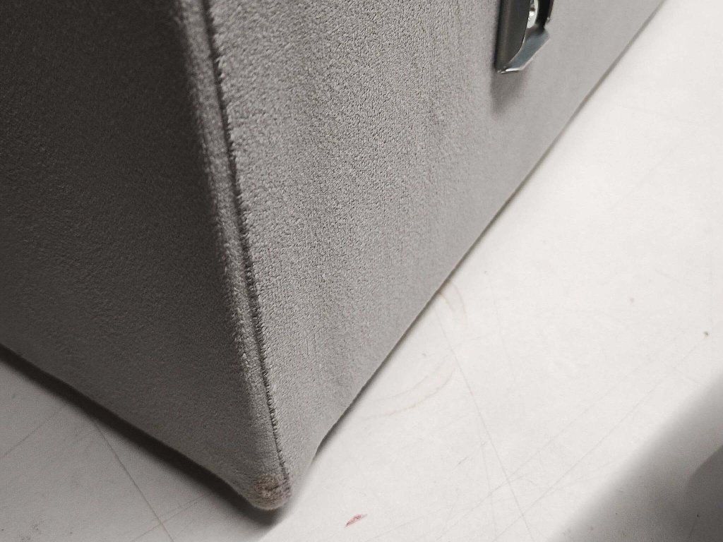 - Elegantné sivé čalúnenie z látky Trinity je odolné, ľahko sa čistí a pôsobí moderne.
