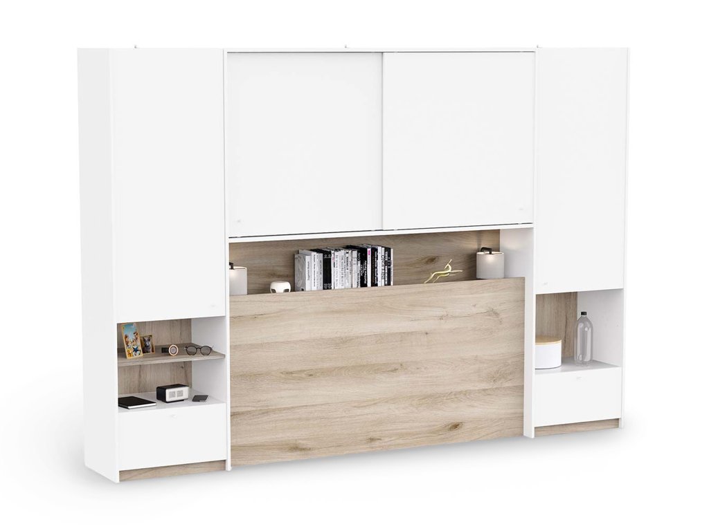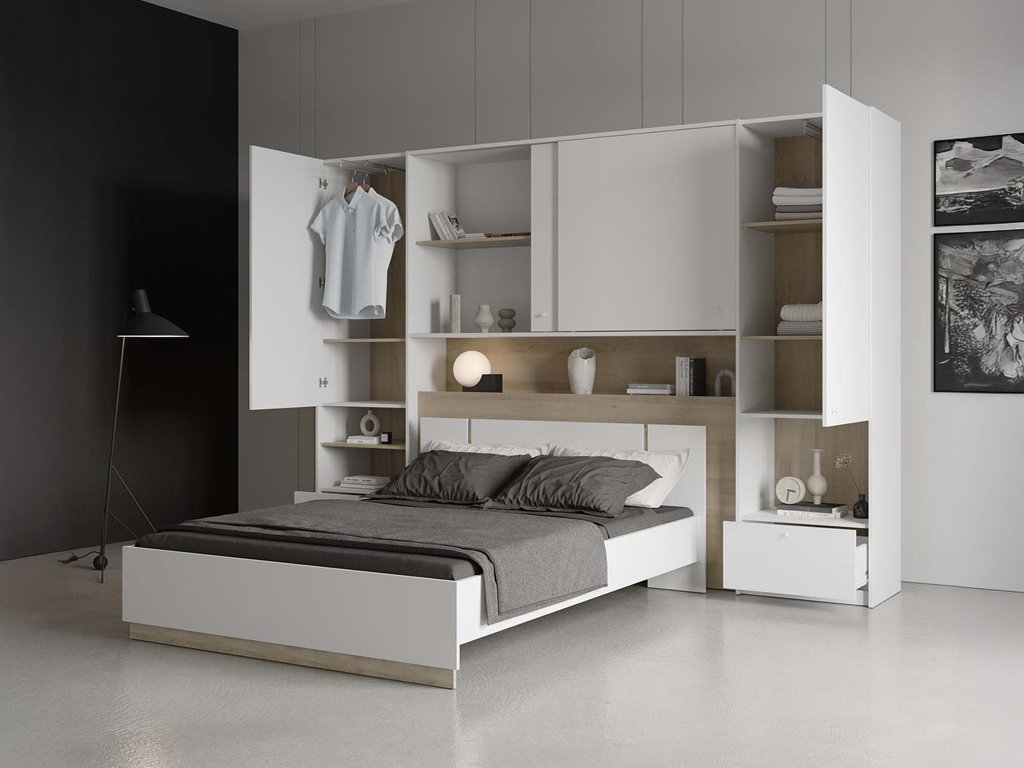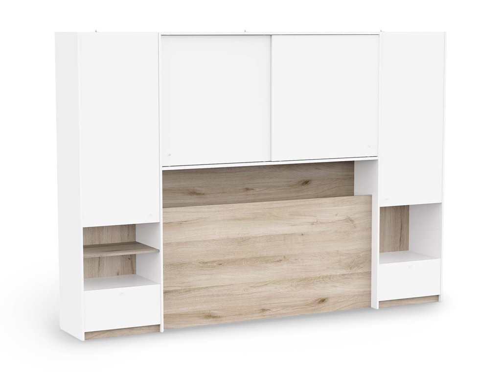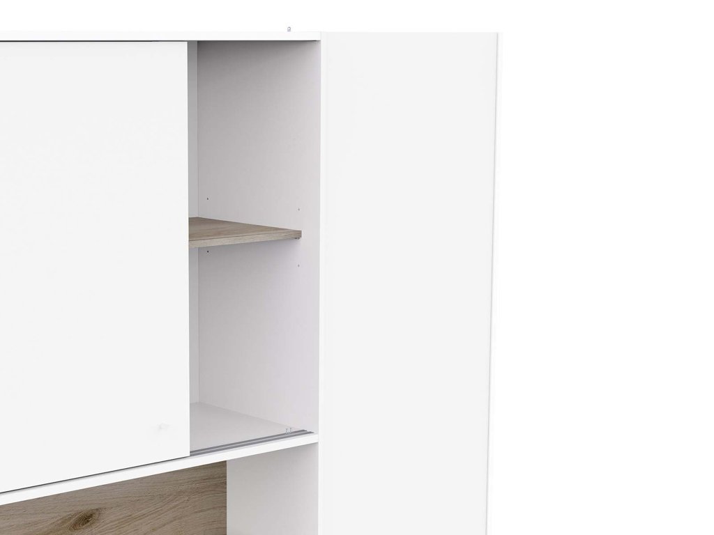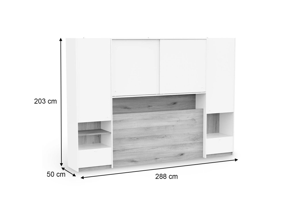 Hľadáte elegantný spôsob, ako získať viac úložného priestoru bez zbytočného zahltenia interiéru? Nábytková stena Watson v kombinácii čistobielej farby a dekora dubu je premysleným riešením ku pohovke do obývačky ale aj postele do spálne.