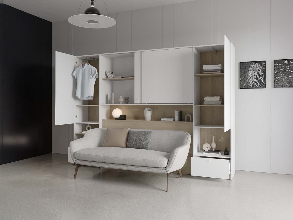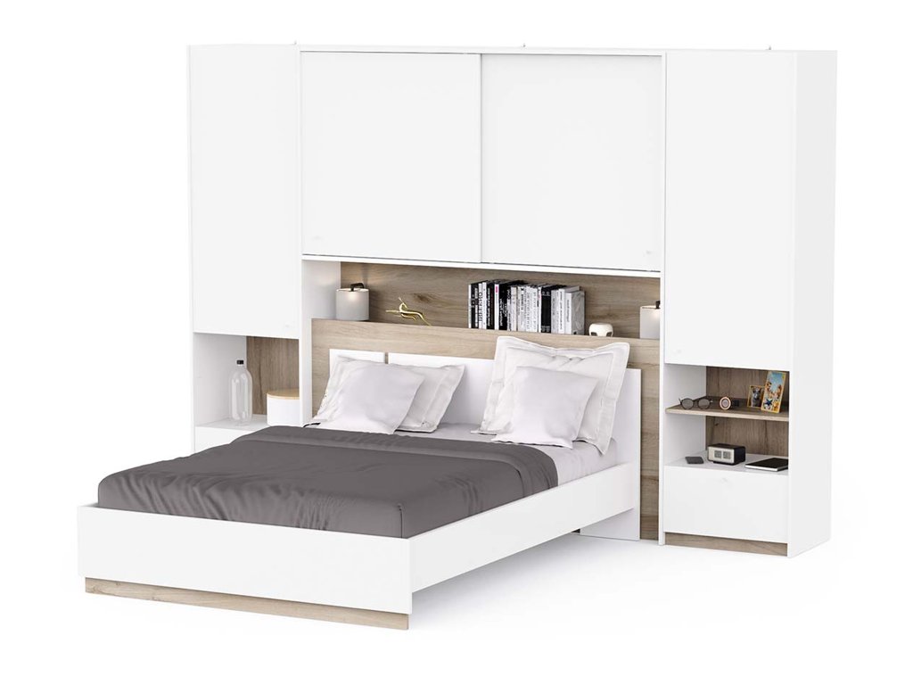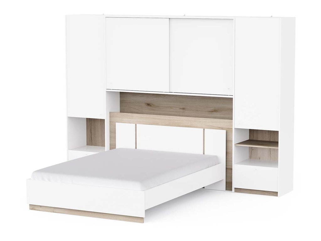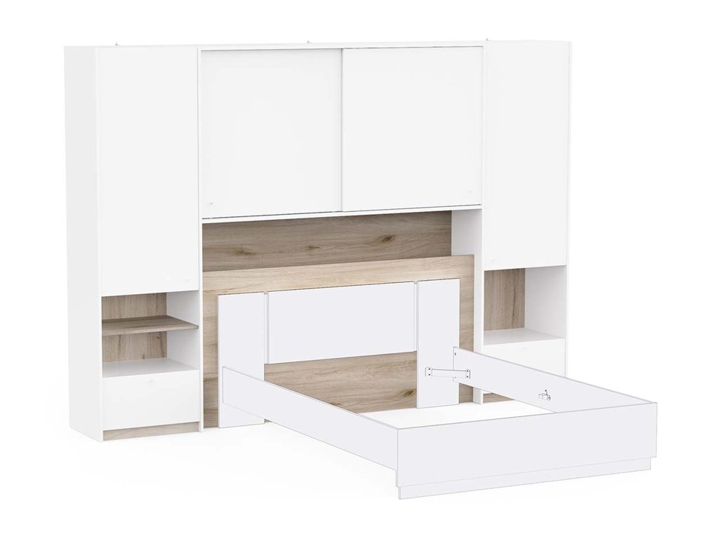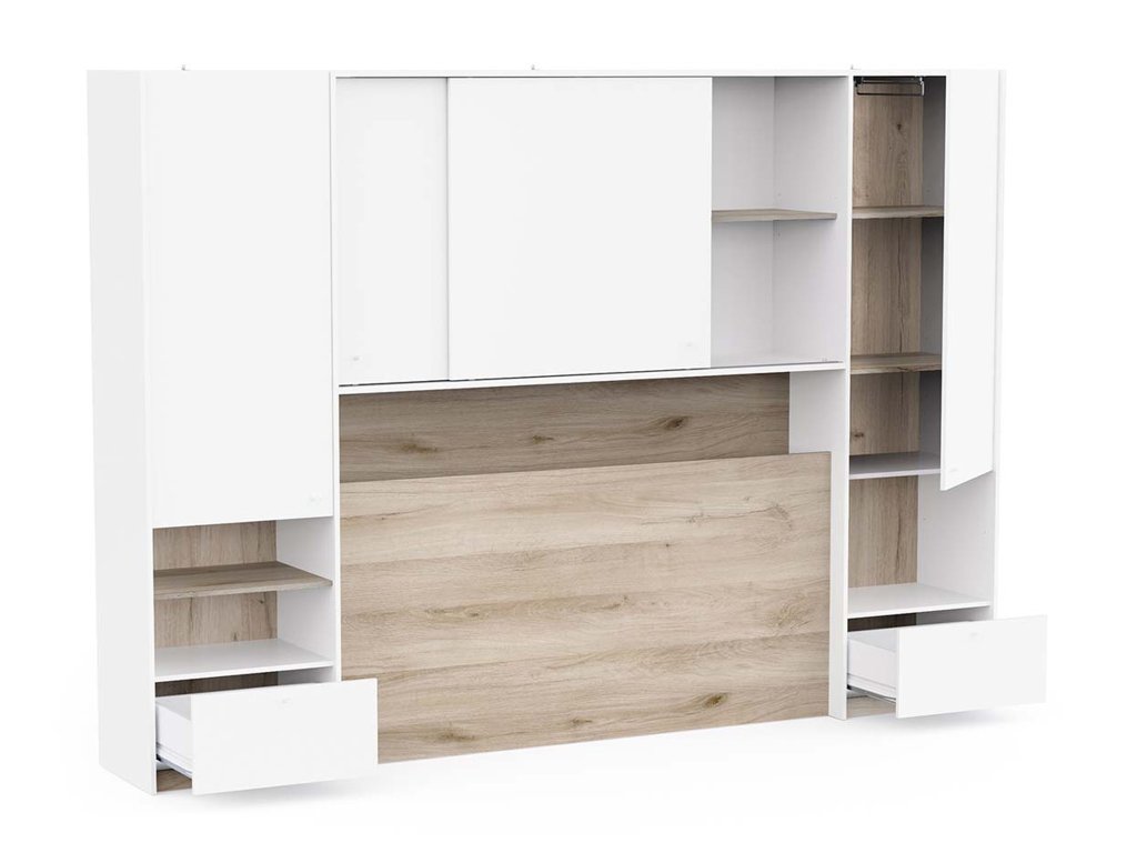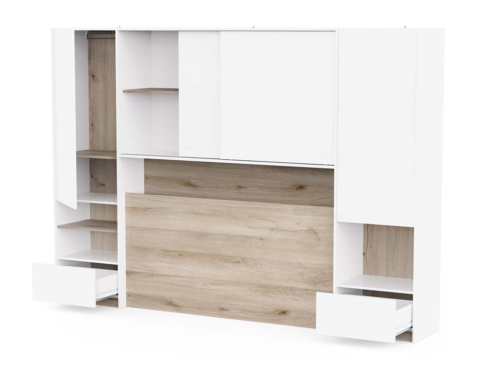 Hľadáte elegantný spôsob, ako získať viac úložného priestoru bez zbytočného zahltenia interiéru? Nábytková stena Watson v kombinácii čistobielej farby a dekora dubu je premysleným riešením ku pohovke do obývačky ale aj postele do spálne.