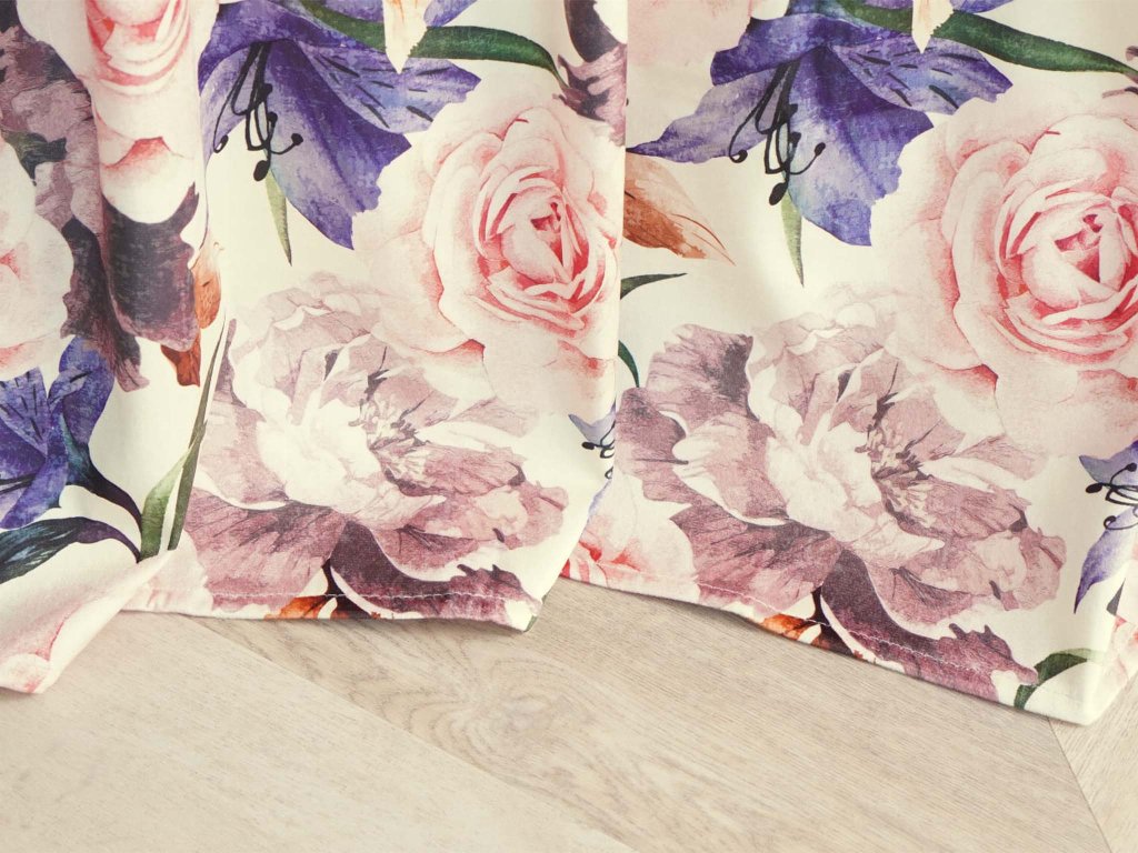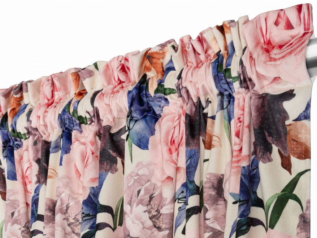 Hotový záves Florry vás očarí romantickým vzorom ruží. Je vyrobený z jemnej zamatovej látky, ktorá poskytuje miestnosti polotmavý efekt, pričom dokáže zatemniť až 80 % svetla. Tento ružový záves obsahuje 8 pochrómovaných strieborných priechodiek s priemerom 4 cm, ktoré umožňujú jednoduché a rýchle zavesenie.