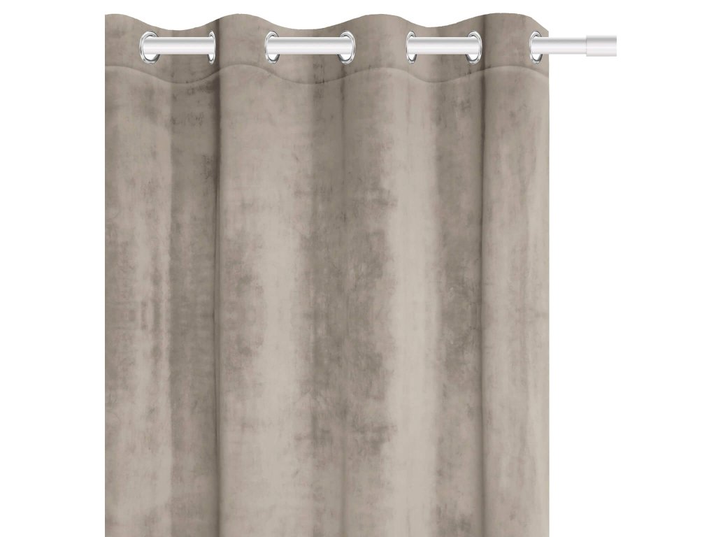 Béžový velúrový záves v rozmere 140x250 cm. Vďaka svojmu jednoduchému dizajnu a farebnému prevedeniu zapadne do každého interiéru a zútulní ho. Je veľmi elegantný, vyrobený z velúrovej látky, ktorá má polomatný efekt. Vašej obývačke či spálni dodá ten správny šarm. Látka je nadýchaná, mäkká a na dotyk veľmi príjemná. Vďaka strieborným očkám s priemerom 4 cm sa ľahko montuje na tyč.