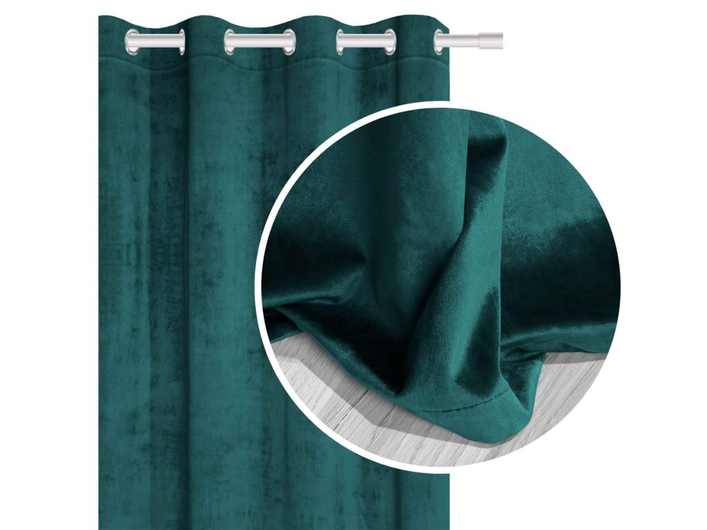 Smaragdový velúrový záves v univerzálnom rozmere 140x250 cm. Hodí sa takmer do každého interiéru. Je veľmi elegantný, vyrobený z velúrovej látky, ktorá má polomatný efekt a Vašej obývačke dodá ten správny šarm. Látka je nadýchaná, mäkká a na dotyk veľmi príjemná. Vďaka strieborným očkám s priemerom 4 cm sa ľahko montuje na tyč.