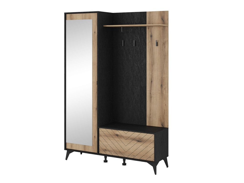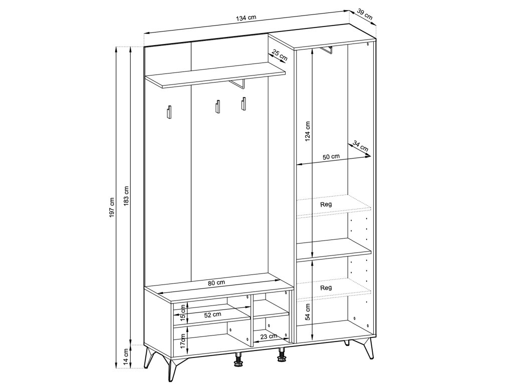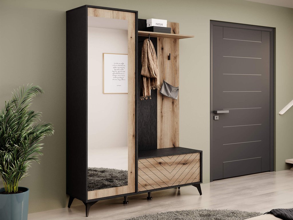 Vešiaková stena so zrkadlom Diamond ponúka jednoduchý spôsob, ako elegantne zariadiť vašu predsieň či chodbu, pričom vám pomôže usporiadať si všetky veci na svoje miesto. S úpravou zovňajšku vám pomôže vysoké zrkadlo. Za dvierkami so zrkadlom sa nachádzajú 3 police, z ktorých dve môžete namontovať až v 9 rôznych pozíciách. Nad nimi sa nachádza tyč na zavesenie vašich kabátov a búnd. Vešiaková stena obsahuje tiež vešiaky na zavesenie oblečenia, nad ktorými je široká polica. Skrinku v spodnej časti môžete využiť ako botník (skrinku na topánky) či uložiť si do nej čiapky, rukavice alebo šály. Navyše skvelo poslúži aj ako lavica na sedenie pri obúvaní. A aby bolo sedenie pohodlnejšie, k vešiakovej stene môžete dokúpiť aj čalúnený podsedák.