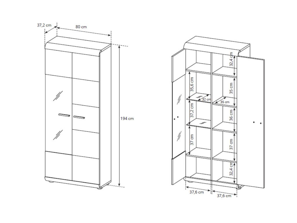 - Rozmery (šxvxh): 80 x 194 x 37 cm