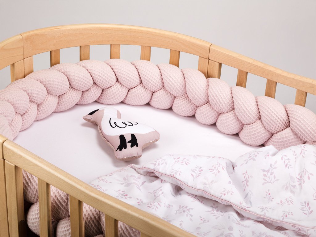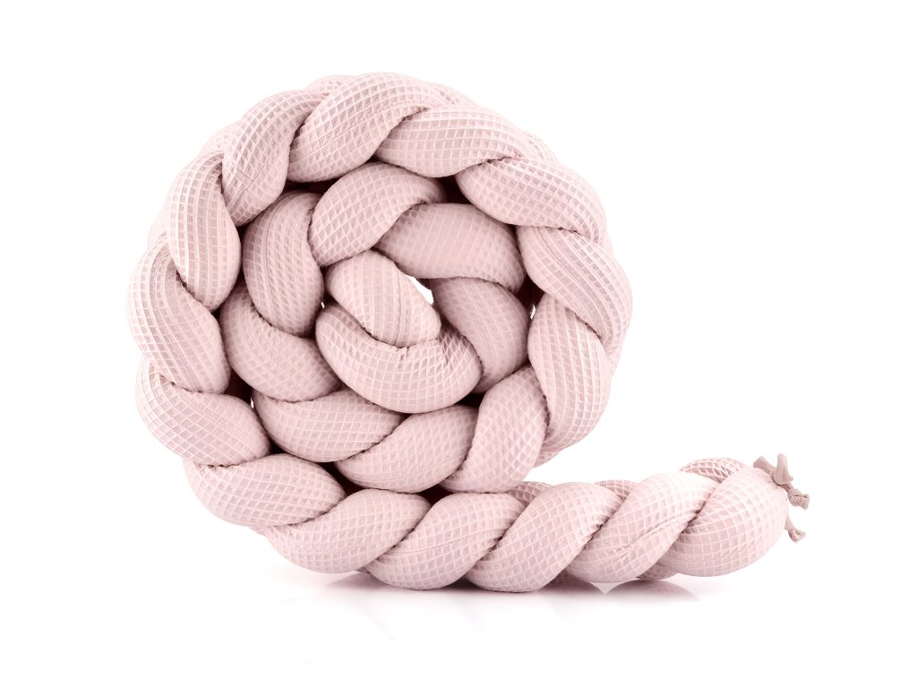Pletený vrkoč do postieľky 210 cm v obľúbenej pudrovo ružovej farbe je štýlový a veľmi funkčný doplnok napríklad do detskej rastúcej postieľky 7v1. Má zaujímavejší dizajn, ale poslúži rovnako dobre ako klasický ochranný mantinel. Vrkoč do postieľky pekne ochráni dieťatko, ktoré sa začína v postieľke viac pohybovať, aby sa neudrelo o drevené priečky postieľky.