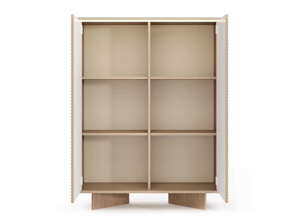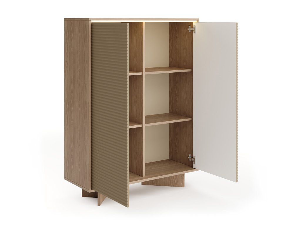 Minimalistický vzhľad s praktickým úložným priestorom robí z vysokej komody Semira štýlový a zároveň funkčný kúsok. Jej čisté línie dopĺňajú jemne drážkované MDF predné plochy, ktoré nábytku dodávajú moderný charakter a vizuálnu ľahkosť. S jej výškou efektívne využíva priestor, pričom za dvojicou dvierok sa skrýva prehľadne rozdelený úložný priestor s policami, ideálny pre organizáciu drobností v obývačke, jedálni alebo pracovni. Moderné push-to-open otváranie umožňuje pohodlný prístup bez úchytiek.