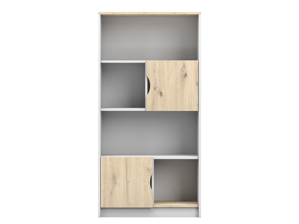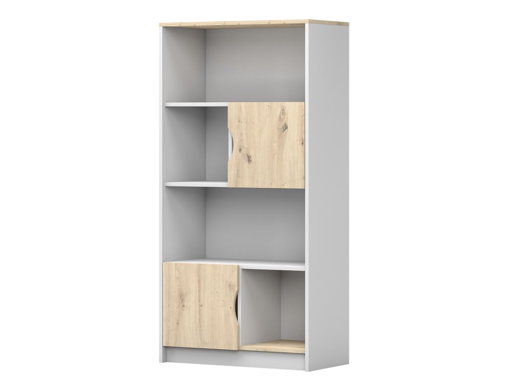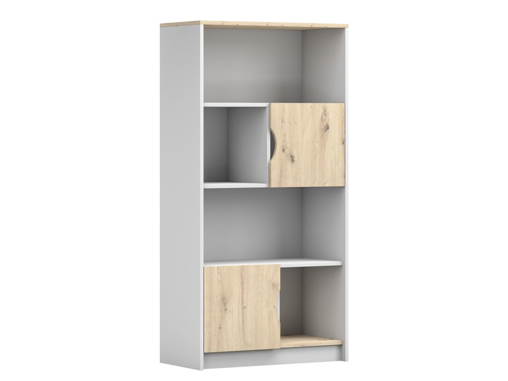 Dizajnový vysoký regál Joy je ideálnym riešením do detskej alebo študentskej izby, kde je potrebné vytvoriť čo najviac úložného priestoru bez toho, aby sa narušil celkový vzhľad interiéru. Kombinácia bielej farby a dekoru dub artisan pôsobí sviežo a moderne, zatiaľ čo bezúchytkový systém a čisté línie podčiarkujú minimalistický charakter regálu. Vnútorné usporiadanie poskytuje dostatok miesta na knihy, školské potreby aj drobnosti, ktoré potrebujú svoje stále miesto.
