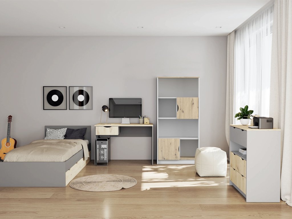 Moderná kolekcia JOY prináša praktické a dizajnovo premyslené riešenia do detských a študentských izieb. Vyznačuje sa kvalitným spracovaním, bezúchytkovým systémom a dostatkom úložného priestoru. Každý prvok – od postele so zásuvkami až po priestrannú skriňu či vysokú policu – je navrhnutý s dôrazom na funkčnosť, jednoduchosť a estetiku. Kolekcia je dostupná v dvoch farebných kombináciách vďaka čomu ľahko zapadne do rôznych interiérov.