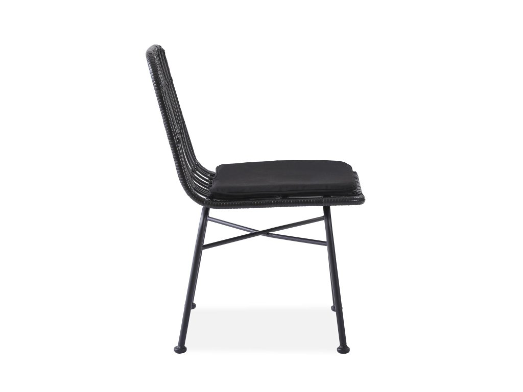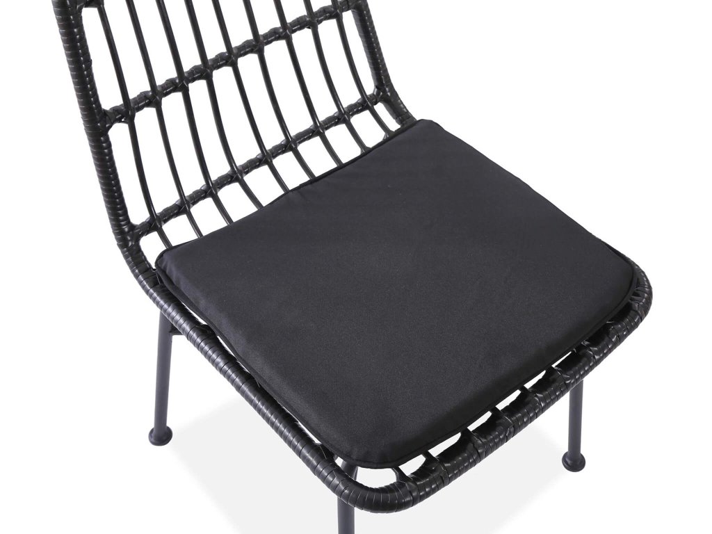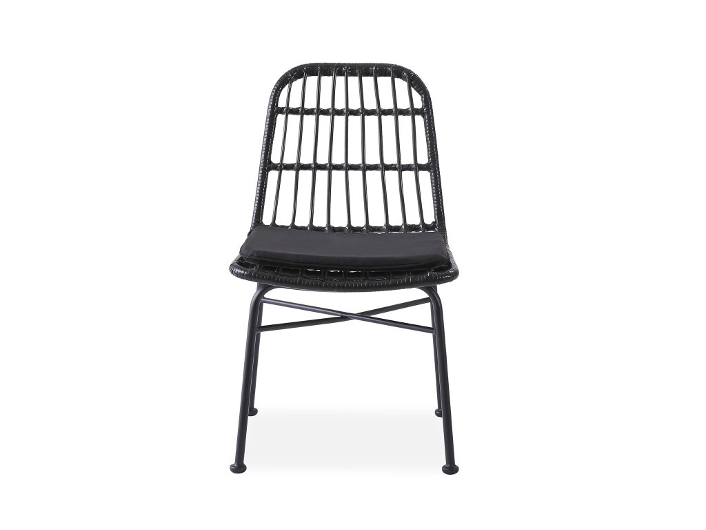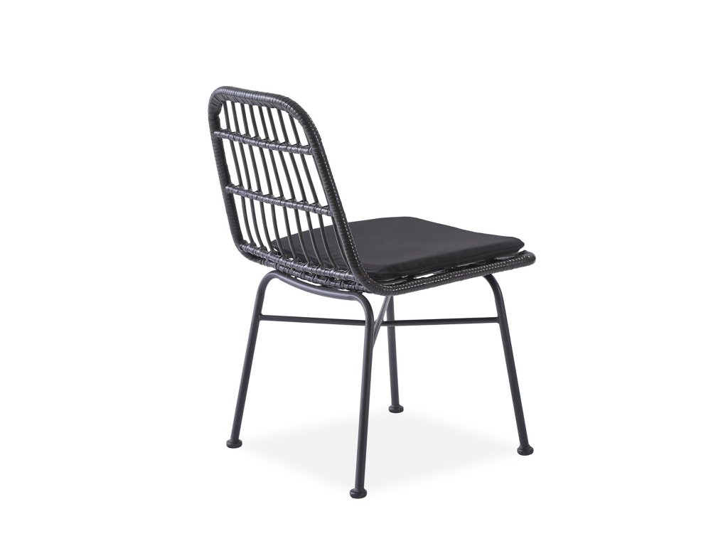 Čierna záhradná ratanová stolička K401 má nadčasový a praktický dizajn. Univerzálny vzhľad stoličky jej umožňuje zapadnúť do mnohých interiérov i exteriérov. Starostlivo vybrané materiály zaisťujú pohodlné a dlhodobé používanie stoličky. Elegantnú stoličku môžete umiestniť do obývačky, kuchyne, jedálne, na terasu, balkón či do altánku. Jej využitiu sa skrátka medze nekladú. Vzhľad stoličky odkazuje na obľúbený boho štýl, stolička však zapasuje aj do rustikálneho či škandinávskeho štýlu. Nožičky z práškovo lakovanej ocele sú zakončené okrúhlou podstavou, čím je podlaha chránená pred poškriabaním. Sedadlo stoličky je z umelého ratanu, ktorý je ako stvorený aj na pobyt vonku.