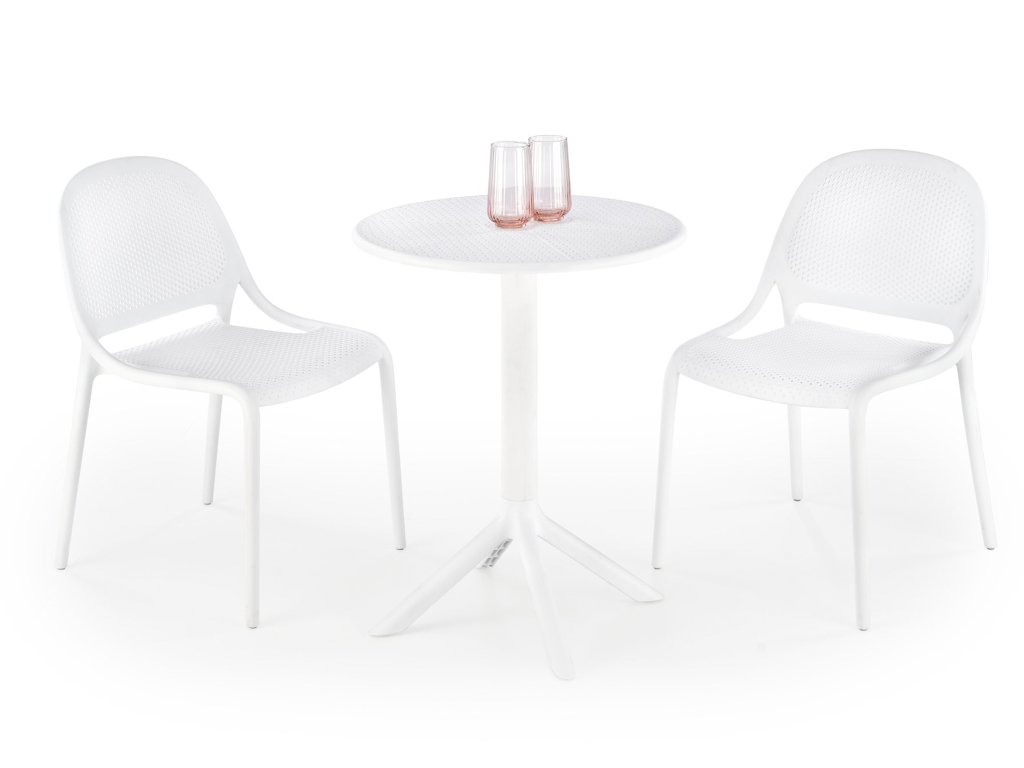 Záhradné sedenie Calvo je zázrakom úspornosti priestoru a elegancie. Súprava, ktorá sa hravo zmestí aj do tých najmenších priestorov, je ako stvorená pre vašu terasu či balkón. S jej minimalistickým dizajnom a optimálnymi rozmermi môžete v pohodlí raňajkovať na terase. Jednoduchý, no nadčasový stôl a biela záhradná stolička, dokonalý pár, ktorý sa hodí k akémukoľvek zariadeniu. Ich pevné spracovanie z odolného polypropylénu zaručuje odolnosť voči nepriaznivým poveternostným podmienkam, čím sú ideálnym riešením pre terasu, balkón či záhradu. Pre majiteľov kaviarní, cukrární a reštaurácií s vonkajšími terasami je táto súprava nevyhnutným doplnkom. Vyberte si z našej ponuky záhradného nábytku a obohaťte svoje prostredie o prvotriedny komfort a eleganciu. Pohodlie, všestranné využitie a štýlový dizajn sú zárukou spokojnosti a dlhodobého užívania.