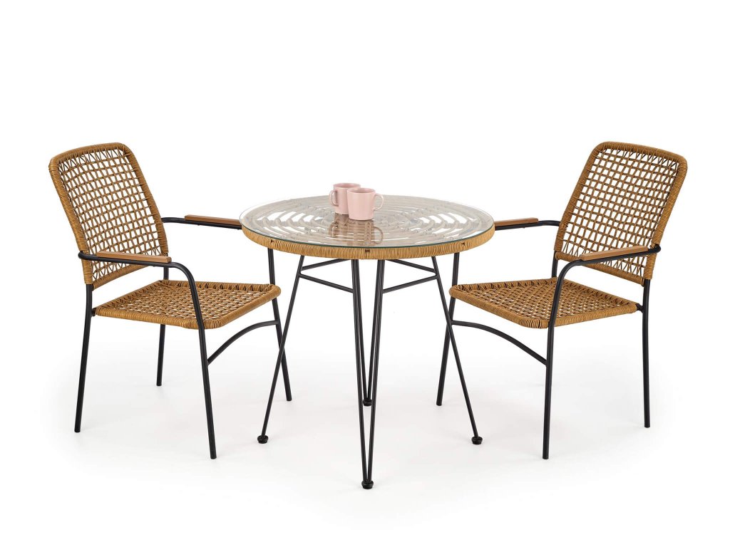 Okrúhly záhradný ratanový stolík Falcon má vrchnú dosku zo skla, ktoré sa ľahko čistí a nevyžaduje prakticky žiadnu špeciálnu údržbu. Na výrobu záhradného stola bol použitý umelý ratan. Záhradná ratanová stolička s opierkami na ruky K457 sa bude vynímať na terase či balkóne. Záhradné kreslo má profilované operadlo a sedák, ktoré sú z umelého ratanu v prírodnej farbe.