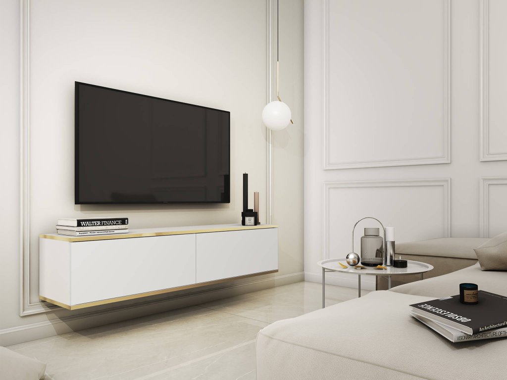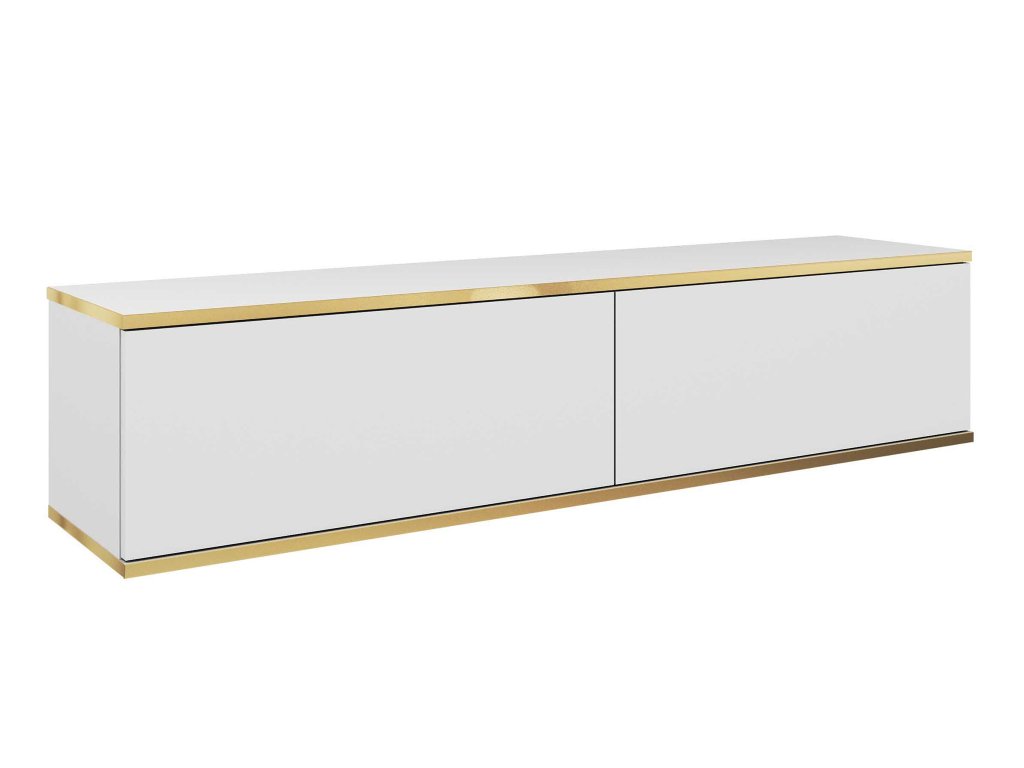 Zoznámte sa s TV stolíkom Oro, elegantným a moderným doplnkom pre váš obývací priestor. Jeho žiarivá biela farba pôsobí luxusne a štýlovo. So šírkou 135 cm ponúka dostatok miesta pre váš televízor a ďalšie zariadenia. Vytvorený z kvalitnej laminovanej drevotriesky s precíznymi ABS hranami, stolík je nielen vizuálne príťažlivý, ale aj odolný voči každodennému opotrebeniu. Dve vyklápacie skrinky poskytujú úložný priestor na uskladnenie rôznych predmetov, čo pomáha udržiavať poriadok vo vašom priestore. Zlaté lemovanie pridáva nádych luxusu a elegancie. Stolík je navrhnutý tak, aby bol zavesený na stenu bez potreby nožičiek, čo vytvára dojem vznášajúceho nábytku a zároveň uvoľňuje priestor pod ním. Systém push-to-open prispieva k minimalistickému vzhľadu stolíka, umožňujúc jednoduché otváranie skriniek bez potreby rušivých úchytov. Oro TV stolík je ideálnou voľbou pre tých, ktorí hľadajú spojenie moderného dizajnu, praktickosti a elegancie pre svoj obývací priestor.