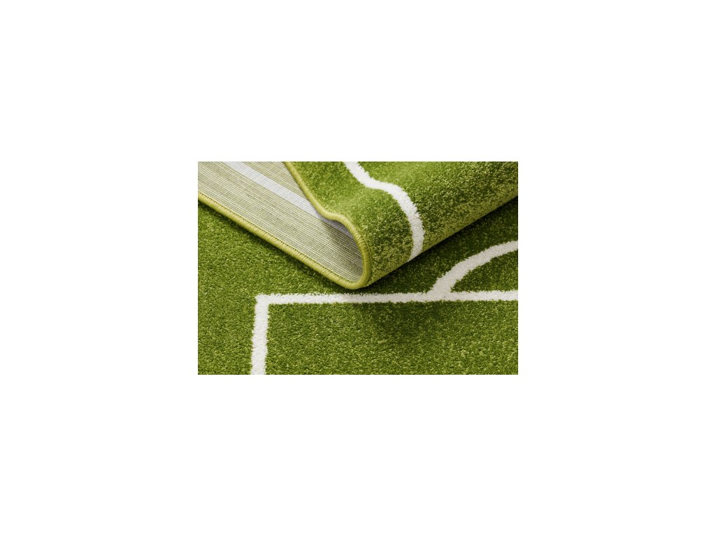 Koberec Mundial s futbalovým vzorom je ideálnym doplnkom pre každého malého futbalového nadšenca. Takto môžete priniesť kúsok ihriska priamo do detskej izby svojho dieťatka. Tento koberec je vyrobený z kvalitného polypropylénu, čo zaručuje jeho dlhú životnosť a odolnosť voči opotrebeniu. Vďaka technológii heat set frise je povrch koberca mäkký a príjemný na dotyk, čo zvyšuje komfort pri chôdzi. Jeho hrúbka, ktorá je približne +/- 12 mm, poskytuje dostatočnú izoláciu a pohodlie. Koberec je ľahký na údržbu. Vďaka svojmu obdĺžnikovému tvaru a zelenej farbe sa ľahko začlení do akéhokoľvek interiéru, pričom dodá miestnosti svieži a športový vzhľad. Tento koberec je ideálny pre detské izby, herne alebo obývacie priestory, kde sa stane centrom pozornosti a zábavy.