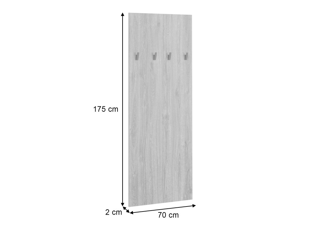 - Vešiaková stena Ansi: lamelová vešiaková stena so štyrmi háčikmi poskytuje praktický priestor na zavesenie kabátov, búnd, tašiek či doplnkov, ktoré chcete mať vždy poruke. Rozmer (šxvxh): 70 x 175 x 2 cm